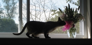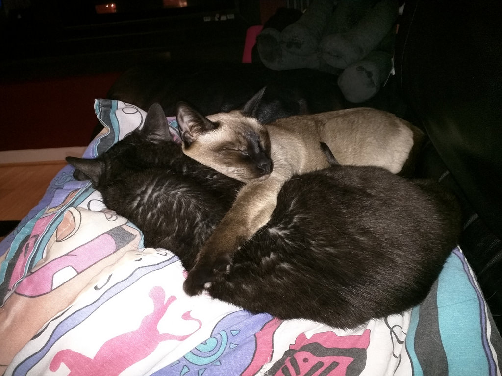 I picked up tiny baby Simcoe on a snowy night in January of 2007. The litter of kittens she came from had two girls, and I picked the one I saw first. Her whiskers were a bit mangled due to some rough play with a sibling but she was the one who was least skittish in the crew if naturally skittish Siamese. And she was so small! Her introduction to Caligula was tense at first but within just a couple days he grew accustomed to her.
