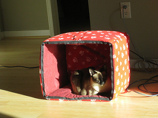 Simcoe loved little cat tents and houses