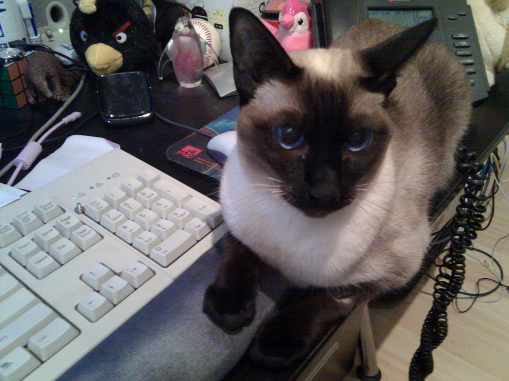 Just plain causing trouble in my office (perhaps needless to say, the cats are locked out during most of my working day)