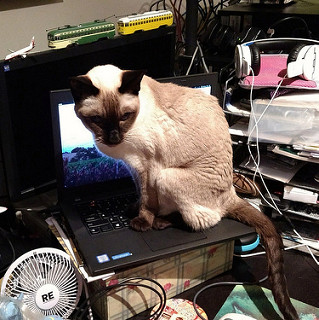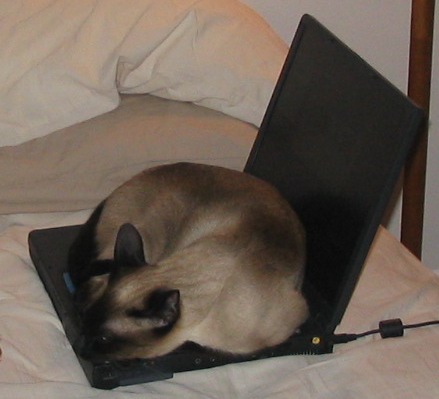 Simcoe loved sleeping on our warm laptops if we left them open